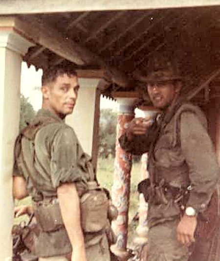 School. Nick retired out as Sgt. Major in 1973. Thanks to Bob Baker and Buddy for attending Nick's services on 22 July, 2006. This photo shows Nick with Neil Couch - and I am sure they are together again. May Light Perpetual shine upon them both - and may Sambo be biting Neil's boot again. |