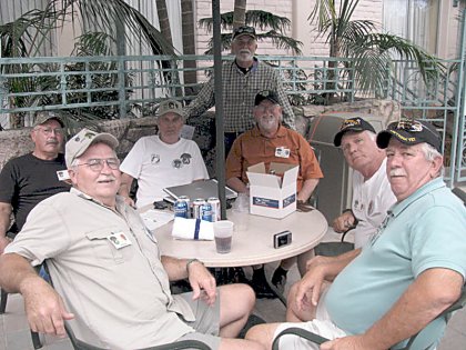 job well done. Come early and stay late. For some of the early attendees life by the pool was rough. L to R: Leonard Garcia, Walter Ennis, Chuck Steward, Estel Matt (standing), JW Goin, Dennis Johnson and Hank Shirah. Photo from Chuck Steward |
