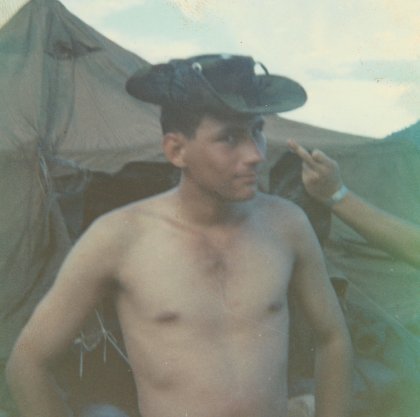 Ben Miller and the fickle finger...(Smoot) Note that Miller is wearing the early Tracker bush hat. Thanks to Dick for sharing these photos. |