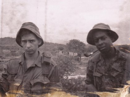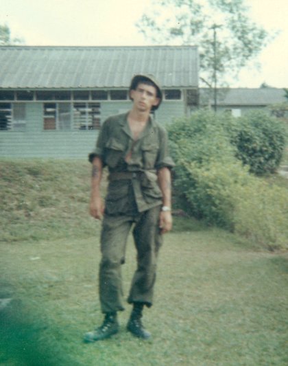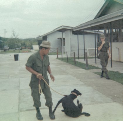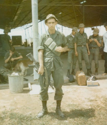 The next six photos are of CTT#9 in-country. Center is Richard L Boyer at Da Nang airport. Behind to the left is Sgt. Devers of the 42nd Scout Dog Platoon. |