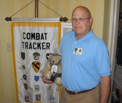 Marty Olhiser with the CTT Bear and Dog. Thanks to some very talented ladies and to Dave Inklaal. Other Tracker projects include Don Campbell's scholarship program, JW Goin's SS Camaro project honoring CTT, John Carroll's CTT Memorial Bench to be installed at the Ohio Veterans Memorial Park. Photo from Bill Welch |
