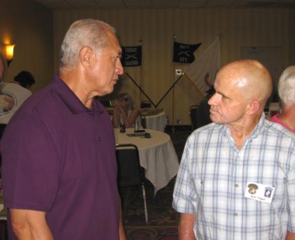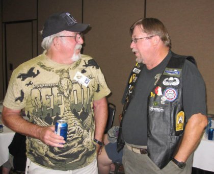 Conversation in the Hospitality Room. Bob Baker and John Dupla. Photo from Bill Welch |