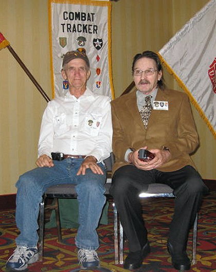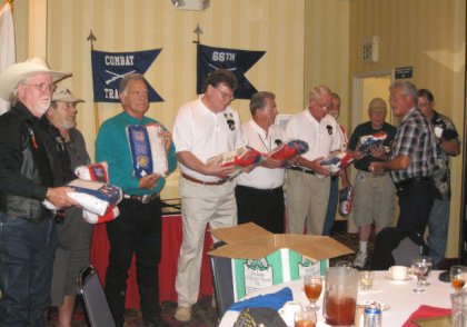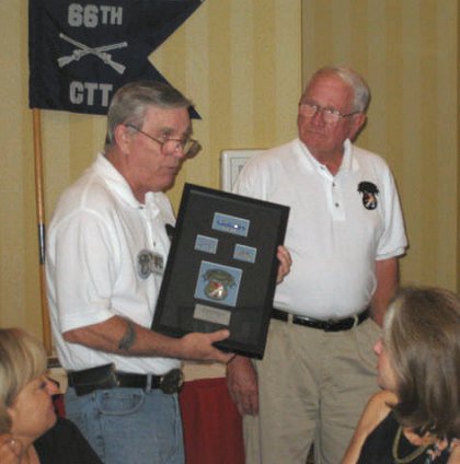 The ceremony begins. Chuck Steward presents Roger Cool a honorary CIB with memorabilia courtesy of Paul Richardson. Thanks to Paul who could not attend the Reunion. Photo from Bill Welch |