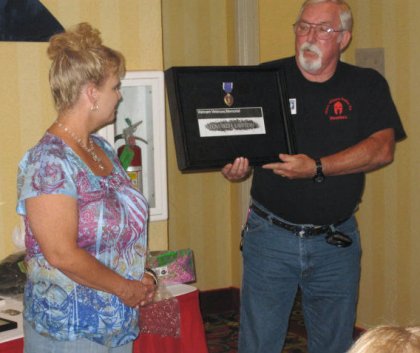 Dave Inklaar presents Purple Heart afghans to award recipients. Thanks to the wonderful folks at the Purple Heart Project and to Dave. Photo from Bill Welch |