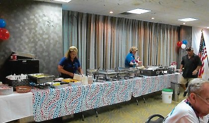 | "Gathering for dinner - 124 settings. Great turn-out...THANKS to all!" We have to agree...EXCELLENT TIME! | |