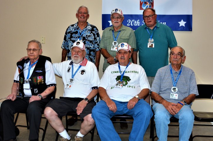| 101st Airborne Division: front row L to R - C.T. Hinely, Terry Muxlow, Gordon Myers, Lou Caputo, Doug Brothers. back row L to R - Gary Walker, Chuck Steward, Don Campbell. (Muxlow, Myers, Caputo, and Brothers were all first time attendees) | |