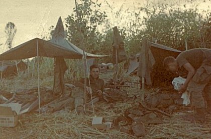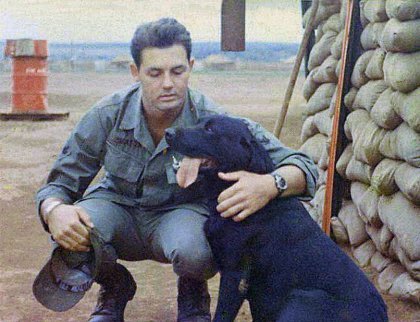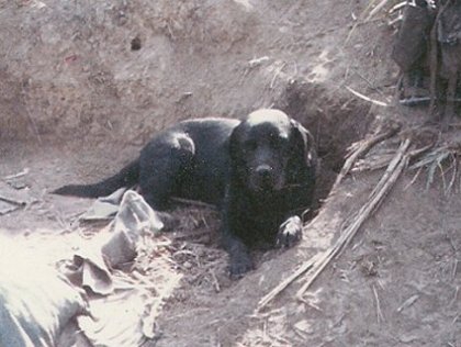 "My dog Butch relaxing after a long day and waiting for his C-Rations". |