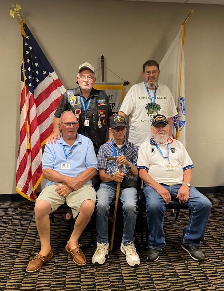 | The photos on this page are of veteran Combat Trackers that attended the 2022 Reunion held in Kansas City-Independence, Missouri. They are grouped by Division or Brigade affiliation. All Photos by Coates | |