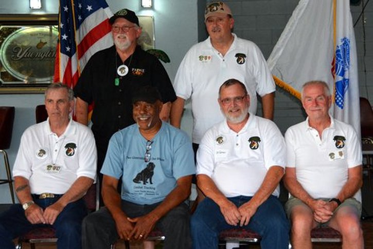 | 23rd Infantry Division. Left to Right: Front Row - John Ferguson, Quang Nguyen, Bobby Hughes, Rodney Patterson. Standing - Bruce Hundley, Grady Brown, Richard Myers, Bob Konarske. | |