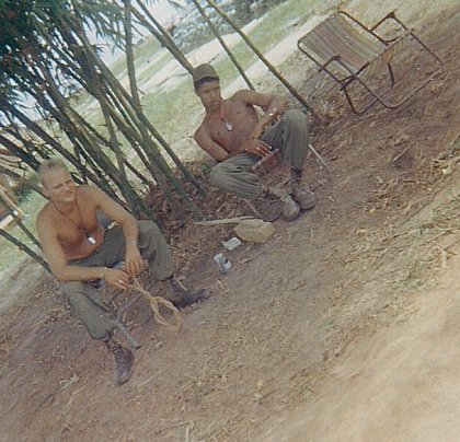 Stand-down time with Don Wohlbrandt and Jearald Dudley tilting in the bamboo |