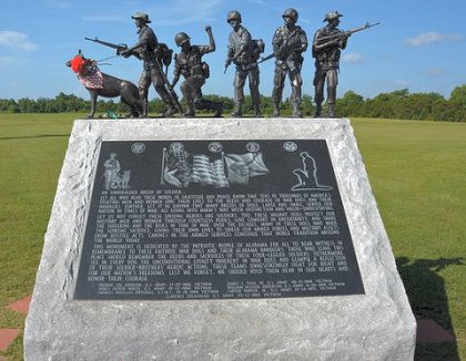 The tribute to War Dogs. Someone gave the dog a red flower decoration. |
