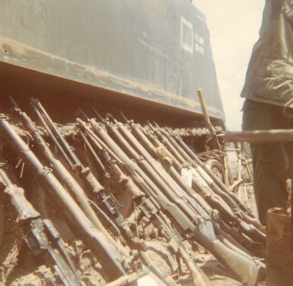 This and the above two photos were taken in Cambodia after President Nixon ordered the incursion of Cambodia. 66th IPCT members joined 1st Cav. APC column. These photos show no 66th IPCT members. |
