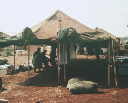 Teams 3 & 4 tents (3 in background) arrival @ Dragon Mountain - Pleiku |