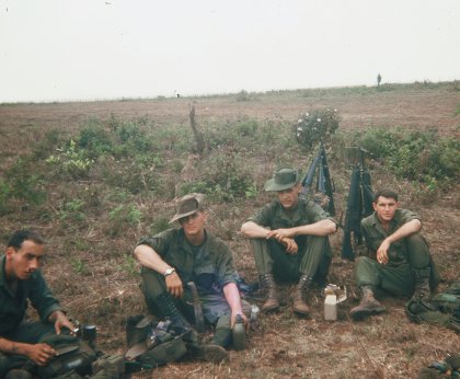 L - R Simpson (CTT 3), John Carroll (nice Bowie Knife & Boots -- FYI ALL of CTT 4 carried Bowie Knives), Johnson (CTT 3), Seevers CTT 3) - in the Highlands |