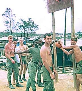 Basketball! From L to R: Madigan, DiBona, Jordan, unknown, Lt. Henry (CO 42nd IPSD-farthest in the back) , Todd, and Graham. Anyone recognize the last unknown? |