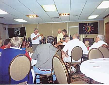 This was Chuck Steward auctioning off items for Don Campbell's support group. I probably have the name wrong - I think it's Second Chance - but the idea is to help a Vet who has been "lost" get another opportunity to put his life back on track. And THAT is a very worthwhile goal. This auction netted a donation of $456.00 for Don's project. Thanks, guys! |
