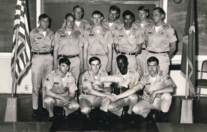 | Fort Gordon Tracker Dog class with Frank Maykuth on the right in the second row. We need some help identifying the other students. | |