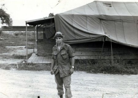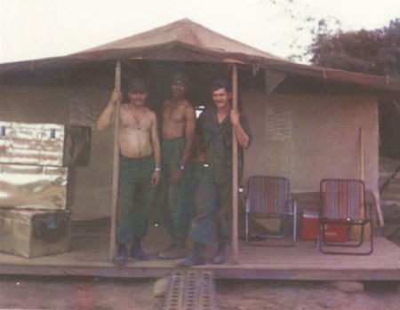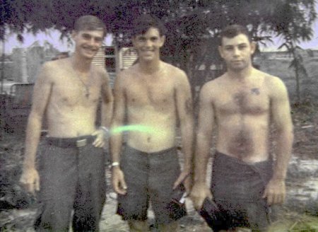 from Jerry Pritchett. Ed Wheeler says, "I came across these photos on a floppy disk that Jerry Pritchett had sent me eight years ago. It's high time that Jerry and I share these with you." To the left: 1st Infantry Division Trackers in 1967. Ed Wheeler, Chuck Stewart and Tim Gress.