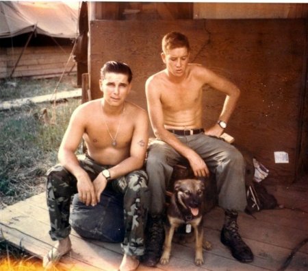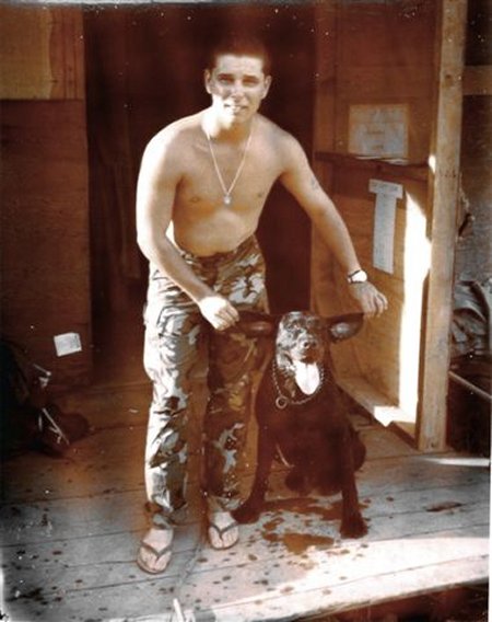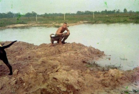 Pritchett. To the left is 1st Infantry Tracker Officer and Gentleman Lt. Don Hendricks with the mascot. To the far left is "the tail wags the dog...". |