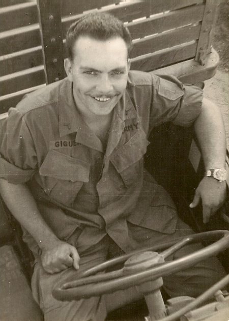 late father. His name is Leonard (Frenchy) Giguere, he To the left is PFC Giguere behind the wheel.