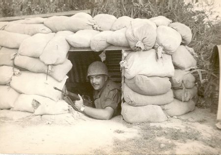Frenchy in the bunker. Another example of those culvert halves at work. |